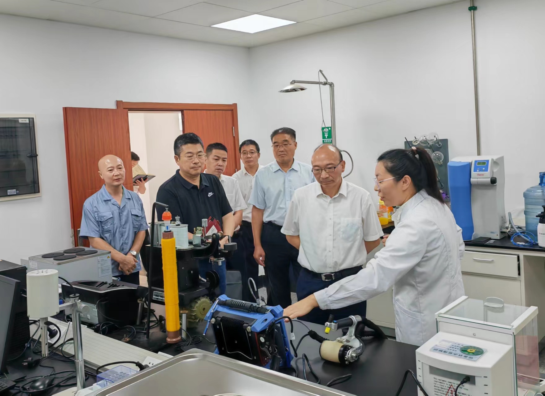 9月5日,集團公司黨委書記、董事長丁銳,副總經理王士華、劉承志等一行到纖維新材料研究院調研。