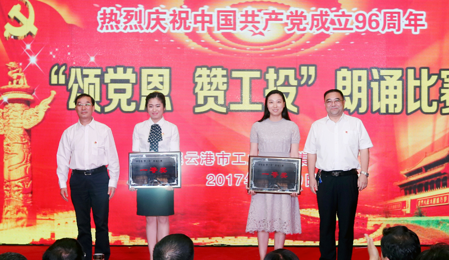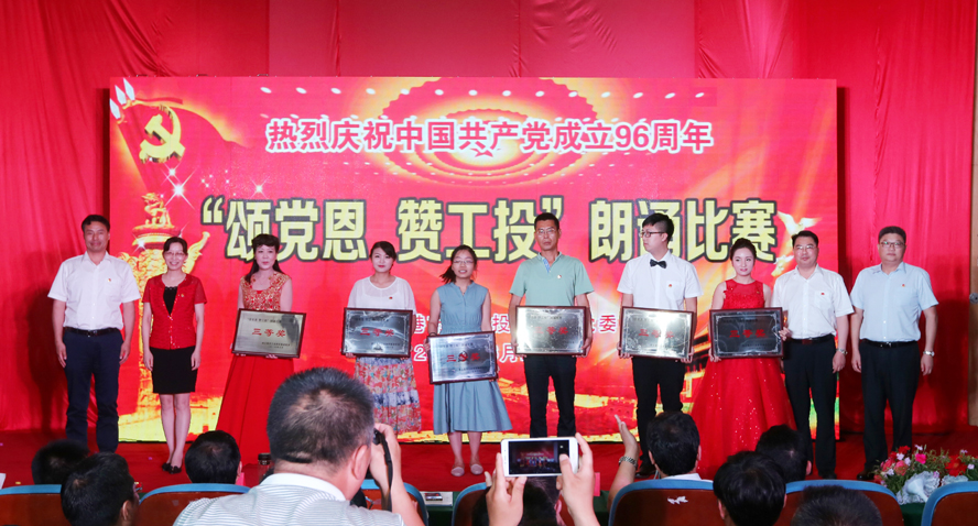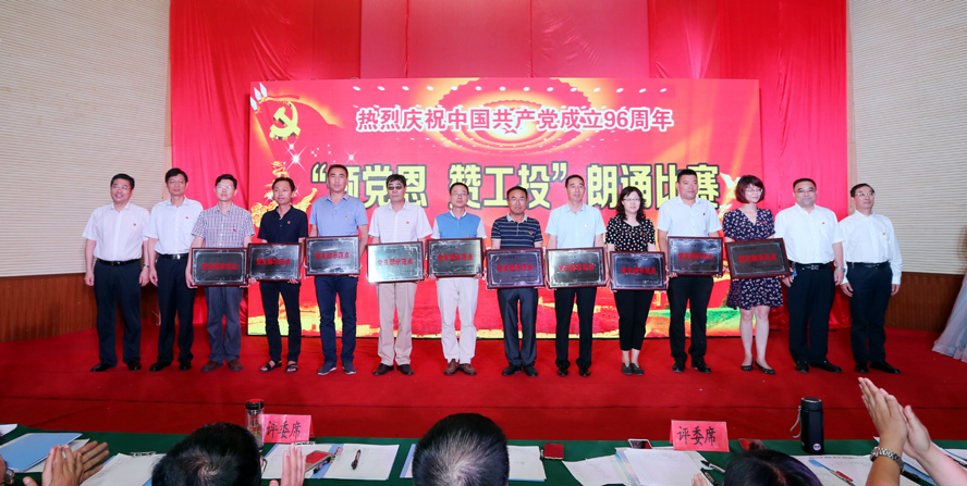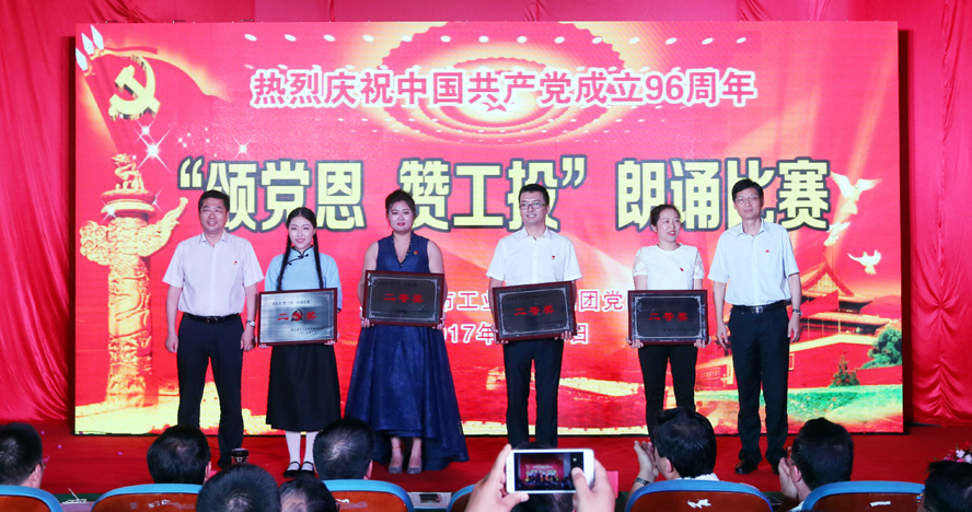 為慶祝中國共產(chǎn)黨成立96周年,緬懷黨的豐功偉績,6月29日下午,集團(tuán)公司黨委在連云港職業(yè)技術(shù)學(xué)院文化藝術(shù)中心舉辦“頌黨恩·贊工投”朗誦比賽,集團(tuán)公司領(lǐng)導(dǎo)楊龍、胡建明、張其海、王士華、戴鴻鳴、汪群、匡友本、陳如軍與來自集團(tuán)公司各條戰(zhàn)線的近三百名代表歡聚一堂,共同慶祝黨的96歲華誕。