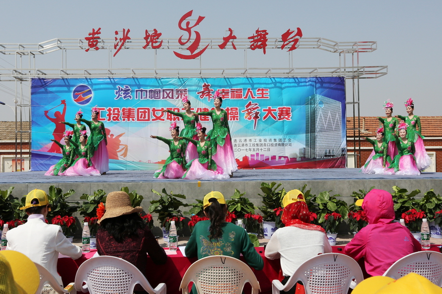 此次大賽分規定套路和自選套路兩項賽程。在上午的規定套路比賽中,隨著歡快的歌曲《今夜舞起來》響起,13支代表隊依次登臺,她們以整齊劃一的動作,朝氣蓬勃的精神狀態,贏得場下觀眾的陣陣掌聲。在下午的自選套路比賽中,各隊舞蹈編排新穎,時而歡快、時而激昂,高潮迭起,掌聲不斷。經過一天的激烈角逐,最后徐圩投資公司、青口投資公司和利海化工公司等3支代表隊獲得大賽一等獎,其他代表隊分獲大賽二等獎和優秀組織獎。