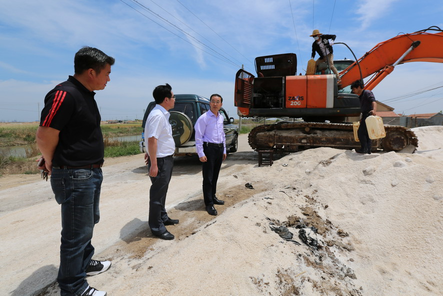 518日,集團公司總經理胡建明利用一整天的時間,就如何推進原料鹽基地建設,提升品種鹽市場競爭力,應對食鹽政策改革形勢,分別深入金橋制鹽公司的原料鹽儲存車間、徐圩投資公司的新灘及深港服務區、灌西投資公司的礦鹵日曬制鹽及柴門海鹽等生產現場進行了實地調研考察。在調研過程中,胡總詳細了解了從池內鹽工藝、扒鹽流程、原鹽運輸、到車間儲存等整個原料鹽輸送環節的情況,指出了存在的相關問題,并要求要根據鹽業市場發展情況,加強調研,科學謀劃有關方案,高規格推進海鹽原料鹽基地建設,為應對食鹽市場放開做好準備。胡總還調研了氯堿公司的安全環保工作。