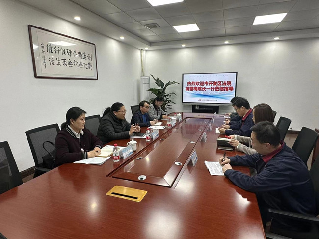 2023年4月21日,連云港經濟技術開發區法院副院長胡雪梅一行蒞臨氨綸公司進行法務工作交流指導,公司常務副總經理楊森、副總經理陳靜陪同。