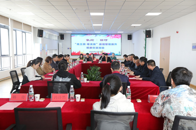 3月9日,杜鐘氨綸公司領導班子成員及三鷹人才組成調研組,由黨委書記胡傳法帶隊,赴徐圩投資公司開展“走工投 看發展”基礎管理提升觀摩交流活動。徐圩投資公司黨委書記、董事長、總經理莊清付等領導陪同交流。