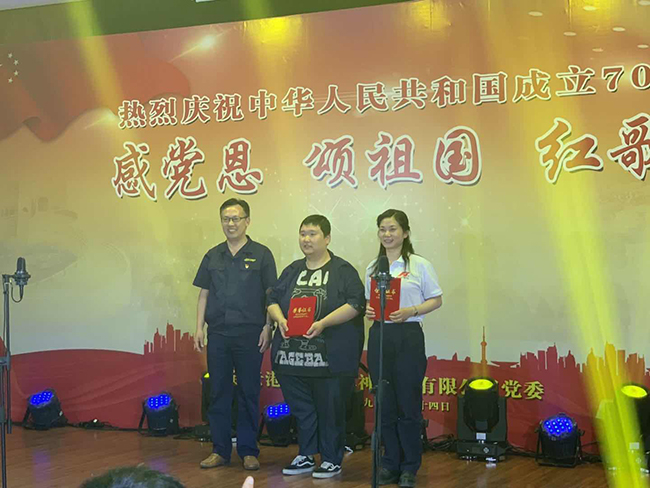 整場比賽氣氛熱烈,場面熱情高亢,《團結就是力量》《我和我的祖國》《沒有共產黨就沒有新中國》《我的中國心》等一首首熱愛黨、熱愛祖國、熱愛人民、熱愛生活的贊歌在場內飄蕩,令人鼓舞,催人奮發,唱出了對偉大祖國的摯愛,對祖國建國70周年輝煌歷程的禮贊。經過激烈比拼,生產三部獲得紅歌比賽一等獎;品保部、管理服務黨支部獲得二等獎;其他參賽代表隊分別獲得三等獎及最佳精神文明獎。