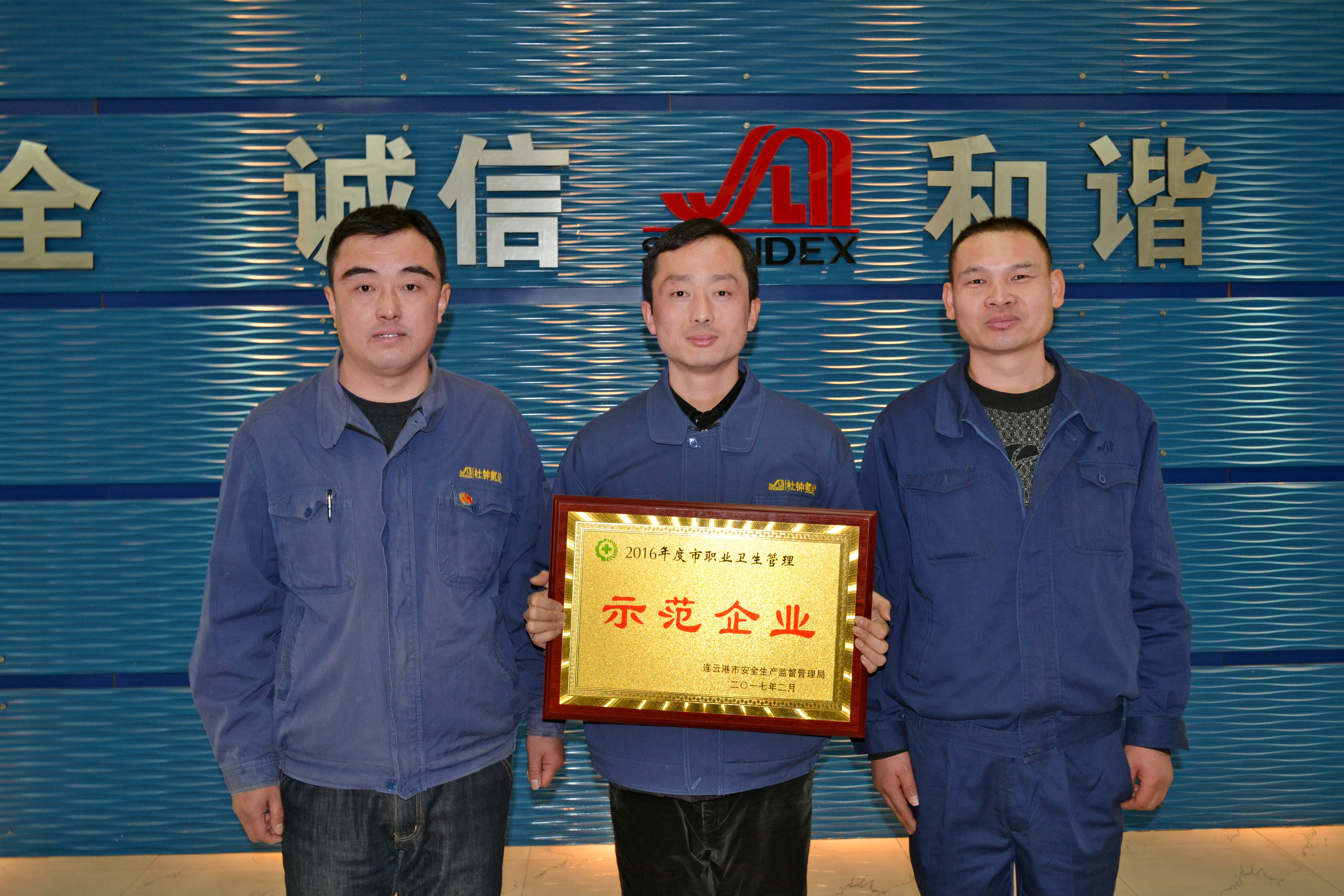 連云港杜鐘新奧神氨綸有限公司積極貫徹落實市安監(jiān)局關(guān)于《職業(yè)病防治法》方面的相關(guān)指示精神,在職業(yè)病防治和保障勞動者的健康權(quán)益方面做了大量工作,成績突出,經(jīng)連云港市安全生產(chǎn)監(jiān)督管理局考核驗收,被評為“2016年度職業(yè)衛(wèi)生管理示范企業(yè)”。