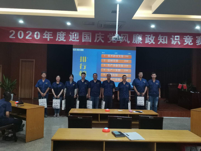 為進(jìn)一步貫徹落實(shí)全面從嚴(yán)治黨要求,扎實(shí)營(yíng)造“學(xué)黨紀(jì)、知規(guī)矩、明底線”的氛圍,通過(guò)以賽促學(xué)加強(qiáng)黨員干部的理論知識(shí)學(xué)習(xí)。930日下午,杜鐘氨綸公司舉辦了“迎國(guó)慶黨風(fēng)廉政建設(shè)”知識(shí)競(jìng)賽活動(dòng)。