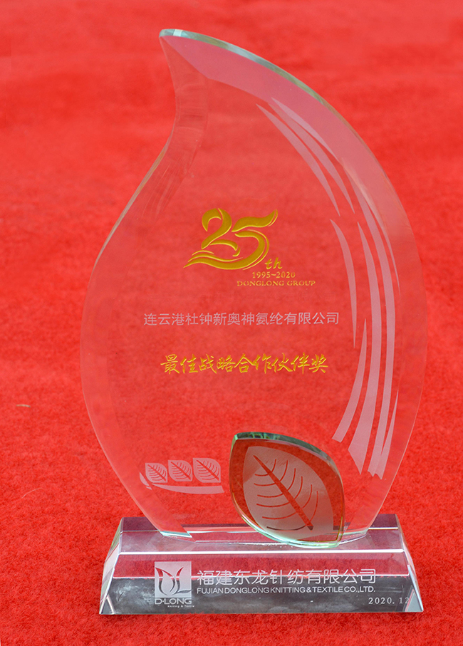 此次參加花邊供應鏈研討會的到場嘉賓300余人,皆是花邊行業內的領軍企業及重要合作伙伴,匯聚一堂討論花邊行業未來的發展趨勢,提出了創新融合的供應鏈理念,到場嘉賓紛紛表示贊同。在26日東龍公司的廠慶儀式上,我公司有幸被東龍公司授予氨綸行業唯一一家“最佳戰略合作伙伴”,充分體現了公司堅持走差別化戰略路線的成果。東龍公司近三年生產的高端花邊產品均使用奧神可染高端粗旦絲,后道產品深受其下游客戶歡迎。借著這一契機,東龍公司已明確表示愿與奧神形成創新戰略聯盟,共同開發新品市場。