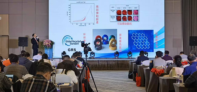 124日,由印染在線主辦的乘風破浪·智匯紡織第七屆(2020)國際功能性紡織品及提高紡織品附加值技術研討會在杭州舉行。公司總經理張斌帶隊參加了本次大會,并做了題為《健康功能性氨綸的開發和應用》的報告。