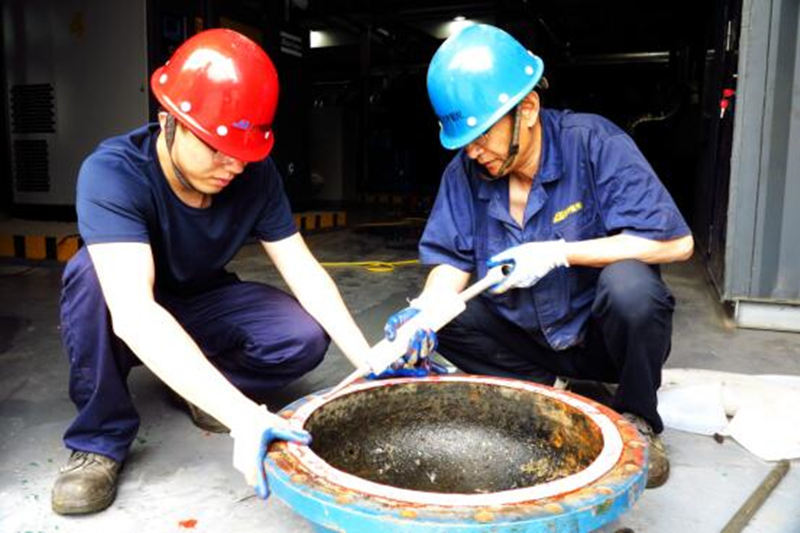 自主性:疫情期間,公用工程部自主維修小組根據八期冷媒機組運行狀況,判斷急需清洗冷凝器和油冷器的情況,緊急申請采購管道清洗設備,在無技術無培訓的情況,攻堅克難,自加壓力,在較短時間內熟悉和掌握清洗及使用技巧和方法,實現當天內完成冷凝器端蓋拆卸、換熱器管束清洗和復位調機工作,保證了生產運行的連續性。