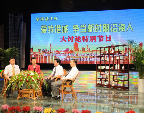 在節(jié)目現(xiàn)場(chǎng), 顧永庚董事長(zhǎng)首先為大家展示了集團(tuán)公司化工和加工鹽等各種特色產(chǎn)品。其后,顧永庚董事長(zhǎng)介紹了集團(tuán)公司在江蘇沿海開(kāi)發(fā)戰(zhàn)略實(shí)施兩年來(lái)所取得的輝煌成就,圍繞沿海開(kāi)發(fā)過(guò)程中金橋鹽化具有的獨(dú)特區(qū)域和資源優(yōu)勢(shì)、“十二五”發(fā)展目標(biāo)定位、“創(chuàng)建名牌企業(yè),共架幸福金橋”的奮斗目標(biāo)等方面與嘉賓、觀眾進(jìn)行了深入探討。