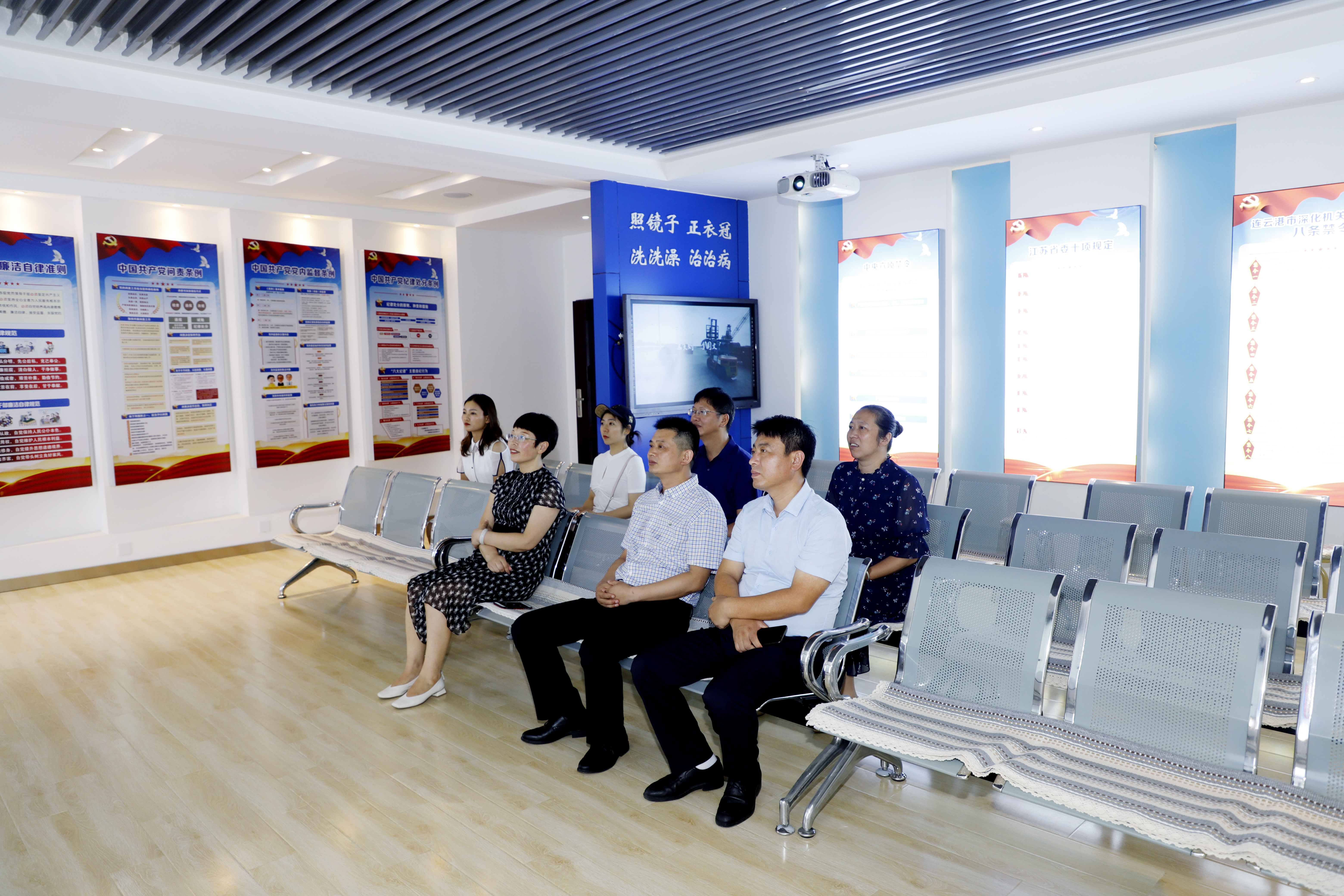 劉殿龍一行了解了灌西投資公司經驗狀況,參觀了廉政文化展廳,在廉政教育室一起觀看了灌西投資公司自導自演的廉政微電影《灌河上歌》,感受灌西廉政文化氛圍。