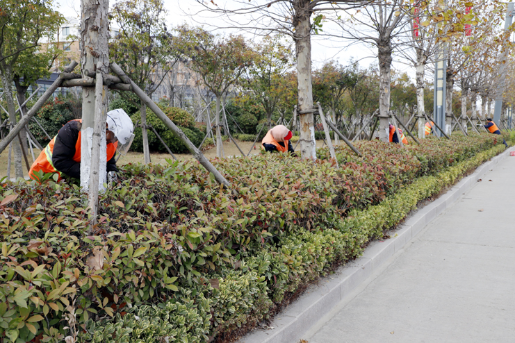 開展冬季環(huán)境整治清掃工程。受冷空氣影響,氣溫逐漸降低,灌西、燕尾新區(qū)和辦公區(qū)綠化景觀植被和路邊樹葉開始陸續(xù)凋落,南翼綠化積極采取有效措施,對落葉的清掃、收集、運輸工作提前調(diào)整了落葉集中路段的保潔頻率,增加了清運次數(shù),同時,進行巡回保潔流動撿拾,來回巡查垃圾死角,堅持做到隨臟隨掃、隨有隨清。重點圍繞社區(qū)主干道、生活區(qū)域落葉的清掃,在巡回保潔路面的同時,定期安排人員對垃圾桶和隔離欄進行清掃和維護,確保落葉期間的環(huán)境衛(wèi)生狀況良好。