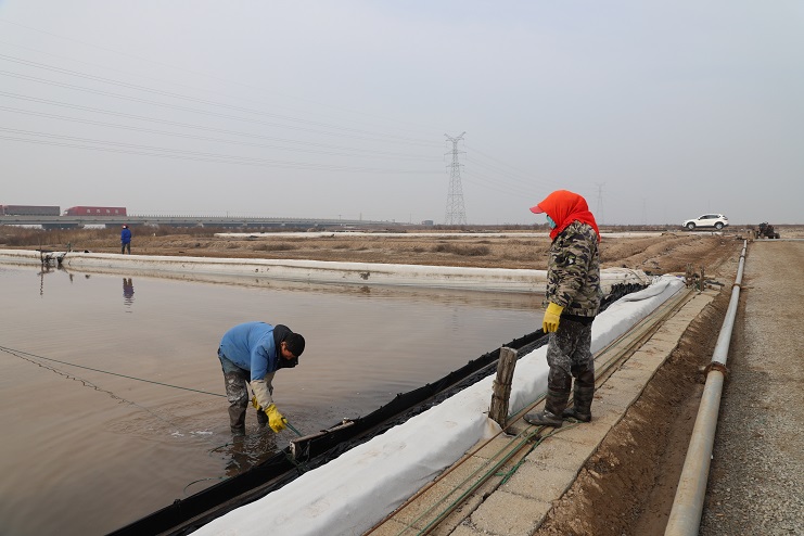 在日曬制鹽新河分公司零班生產現場,該班全體員工正在班長王興東的帶領下有條不紊的忙碌著,他們有的在對繩、有的在活碴、有的在破碴。據了解,由于近期夜間氣溫仍然較低,導致鹽池內的原鹽結塊現象較為嚴重,且對原鹽質量有較大影響,因此原本于25日開始的扒鹽工作現在已經全部暫停,待氣溫進一步升高再繼續扒鹽工作。
