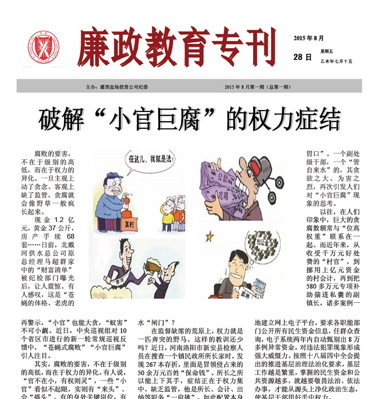 請廣大黨員干部自覺遵守各項黨紀條規(guī)和公司規(guī)章制度,紀委將不定期組織開展明察暗訪,狠剎公大吃大喝不正之風、遲到早退懶惰之風,并加大懲戒力度,對典型問題要點名道姓予以通報,發(fā)揮震懾警示、教育誡勉作用;對有令不行、有禁不止,特別是漠視規(guī)定、頂風違紀的行為,發(fā)現(xiàn)一起、查處一起,決不姑息,決不遷就,使紀律真正成為帶電高壓線。