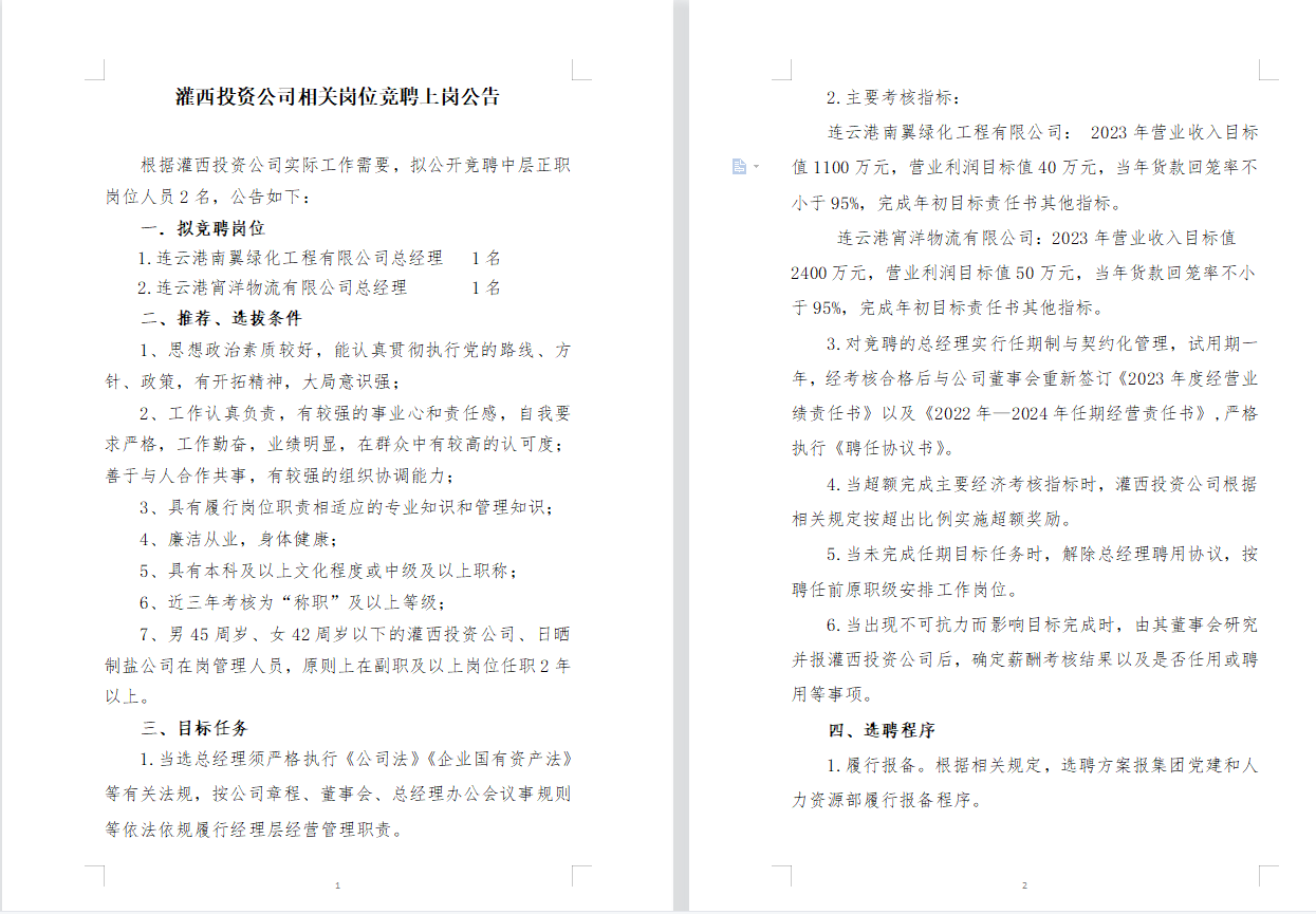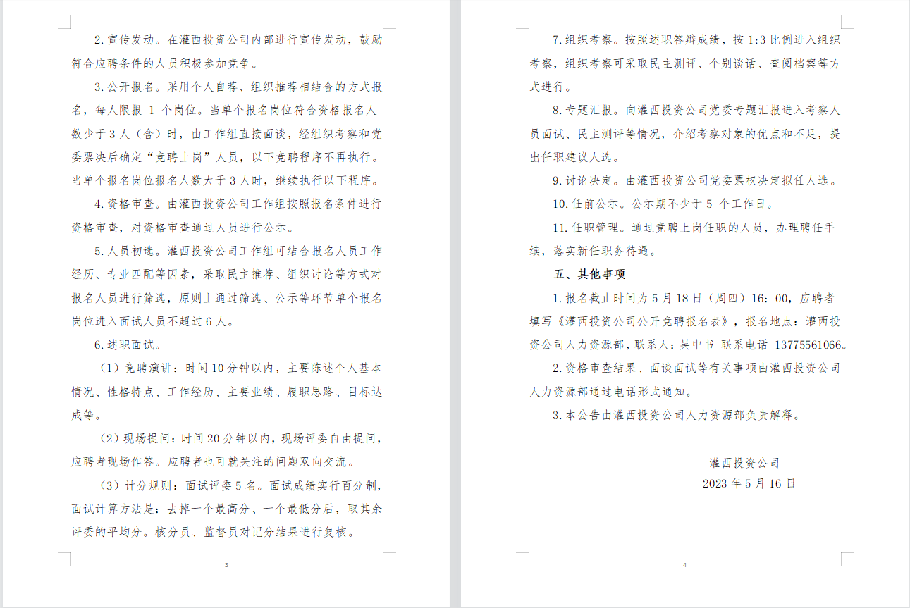 灌西投資公司相關崗位競聘上崗公告