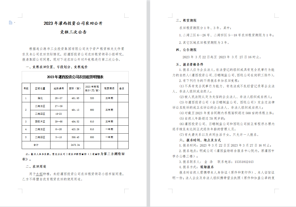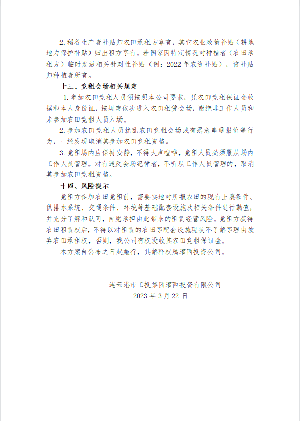 2023年灌西投資公司農田公開競租三次公告