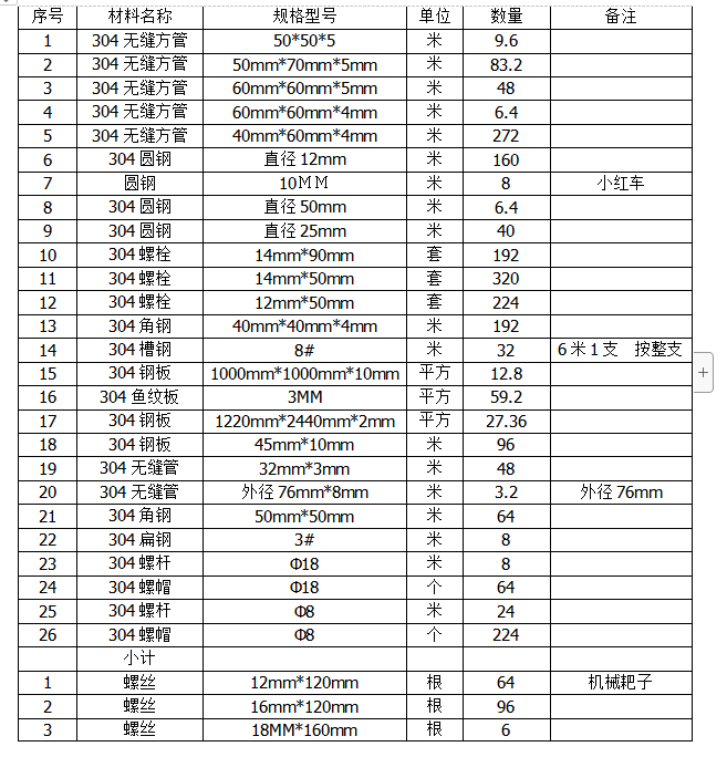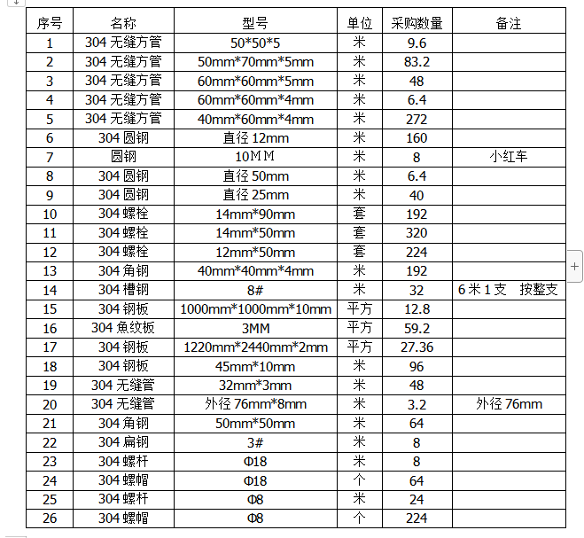 不銹鋼(304)采購項目