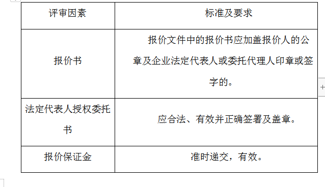 2、評審委員會將根據以下標準對各報價人進行初步評審,有一項不符合要求的,作否決報價處理,不進入詳細評審。