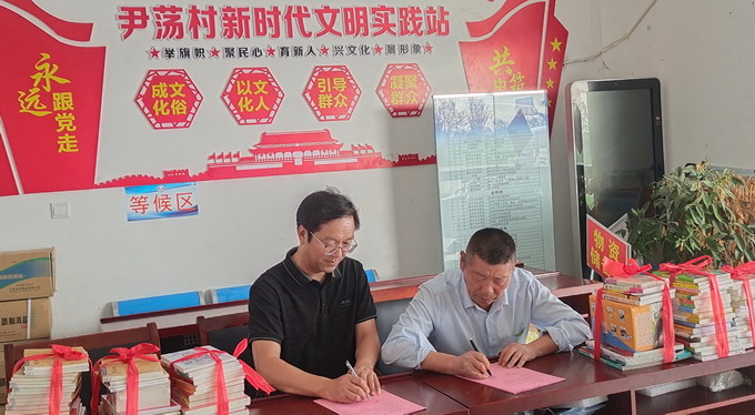 公司黨委副書記、紀委書記、工會主席曹開明,灌南縣北陳集鎮尹蕩村黨總支書記孫克玉代表共建雙方續簽共建協議;向該村贈送了名人傳記、農技推廣和文學藝術等各類圖書100余冊,向鄉民贈送了文明共建紀念品;參觀了該村黨員活動室、黨史室、村史陳列室,聽取了孫克玉對該村概況的介紹。