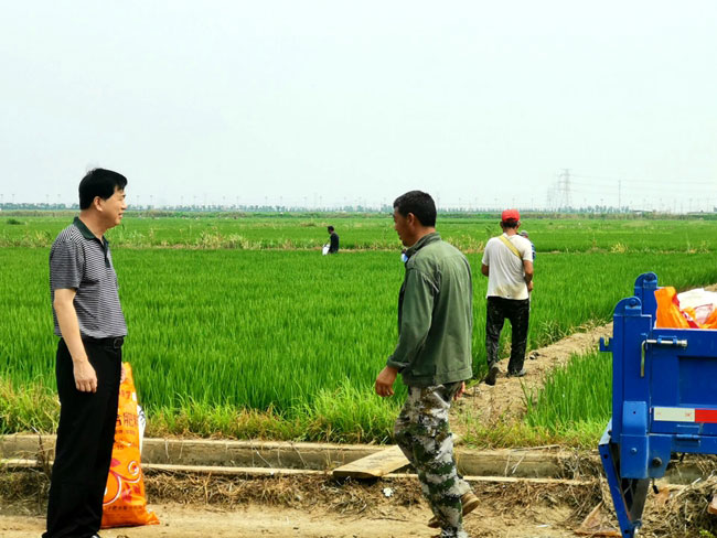 在大新水稻種植現場,胡書記認真查看了各家條田的水稻生長情況,在農場支部書記的陪同下,與田狀元趙華兵為首的四名共產黨員,在田頭親切交談,詳細詢問病蟲害防治和施肥等情況, 關心 條田工的生產和生活是否存在困難,特別是結合 “不忘初心、牢記使命”主題教育活動在即 , 并現場掌握他們學習強國的使用情況,了解他們的真實想法,為黨建工作的開展掌握一手資料。