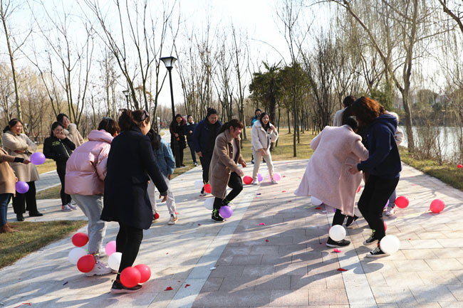 為使大家身心得到最大放松,投入戶外體驗清新大自然,在絲路小鎮公園進行了“三月女人天 別樣婦女節”主題戶外活動。游戲“你畫我猜”中,隊員們有的配合默契一猜既中,也有的用肢體艱難的比劃著,引的大家捧腹大笑。“踩氣球”游戲更是讓現場氣氛達到沸點,每人都放開平日工作中的嚴謹,放松心情在場地上追逐奔跑。大家在游戲中收獲了歡聲笑語及片片感動,同時,通過游戲提高大家的合作意識和進取精神,營造濃郁節日氣氛。