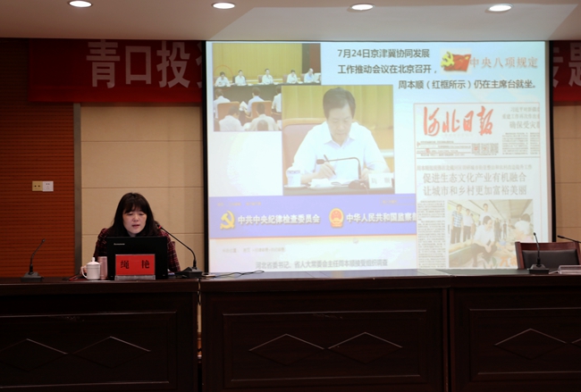 為進(jìn)一步強(qiáng)化作風(fēng)建設(shè),增強(qiáng)黨員干部廉潔從業(yè)意識(shí), 1 月 11 日上午,青口公司邀請(qǐng)市紀(jì)委 黨風(fēng)政風(fēng)監(jiān)督室主任繩艷 作了題為《落實(shí)八項(xiàng)規(guī)定精神 從嚴(yán)從實(shí)改進(jìn)作風(fēng)》的專題報(bào)告,集團(tuán)紀(jì)委書記汪群、公司領(lǐng)導(dǎo)班子成員和全體在崗黨員參加此次講座,講座由黨委書記、董事長(zhǎng)胡傳法主持。
