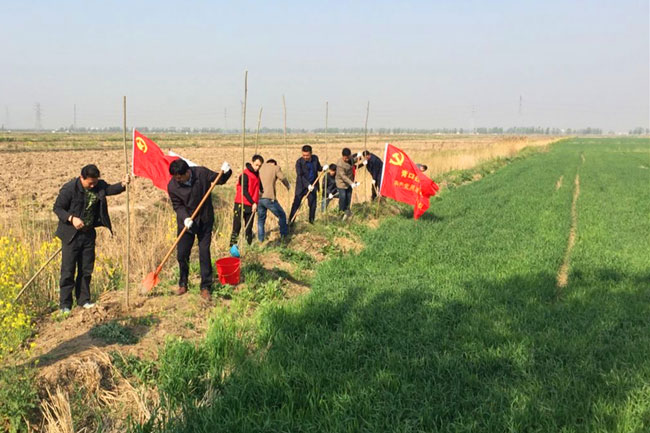 植樹活動現場,大家紛紛擼起衣袖,揮锨鏟土,填入樹苗,正苗澆水,培實新土,干的十分起勁,一片熱火朝天的勞動景象。經過一上午的緊張忙碌,種好的800余株白蠟樹苗一株株井然有序,迎風挺立,在明媚的春光中展現出勃勃生機,為植樹現場增添一片新綠。