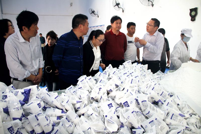 在金橋制鹽的企業文化墻前,朱董事長為大家詳細介紹了公司在鹽業體制改革下面臨的困難和挑戰,公司是全國 99 家定點原鹽生產企業,江蘇 5 家生產企業之一,連云港市唯一一家定點食鹽生產企業,國家不在新設定點廠家的前提下,面臨食鹽是供過于求的買方市場,價格競爭激烈的新形勢,企業只有找準定位,自加壓力來擴大優勢,才能要這次大變革中迎難而上。掛職干部一行在雪花鹽生產和小包裝食鹽的包裝車間參觀了各類鹽產品生產的工藝流程。(杜 娟)