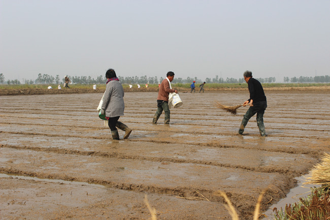 早在4月份,深入田間,就可見緊鑼密鼓的落谷育秧場(chǎng)景。明威公司4月15日完成秧田開溝、打埂、整平,17日開始浸種工作,并同步對(duì)秧田進(jìn)行上水洗鹽排堿及上水整平;4月22日正式實(shí)施秧田落谷工作,截止26日,全面完成自種2485畝秧田落谷工作。