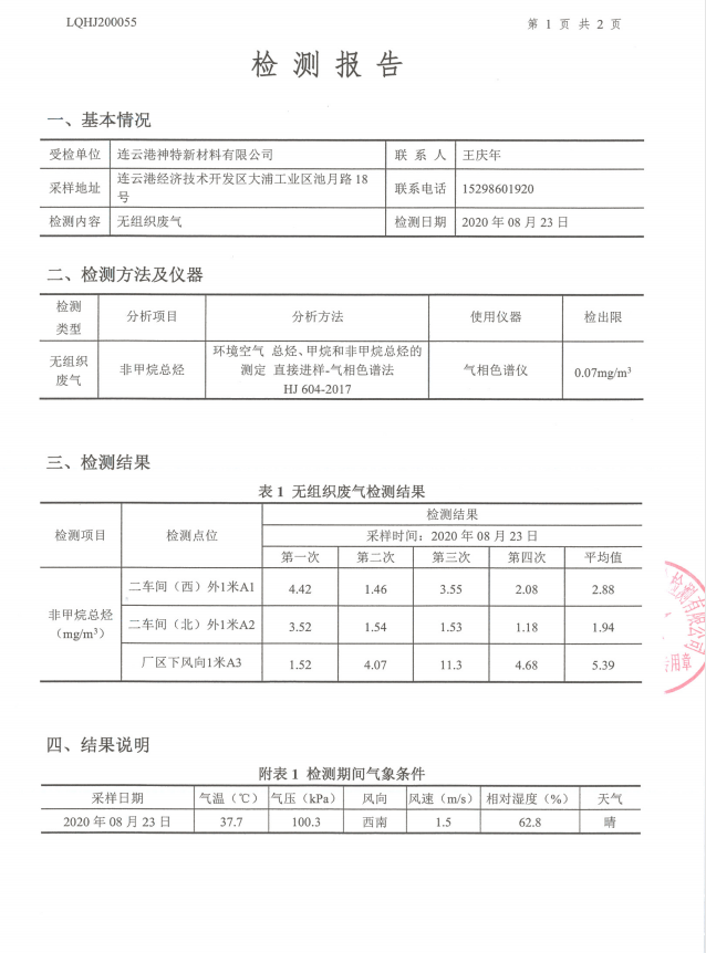 神特公司檢測(cè)報(bào)告公示