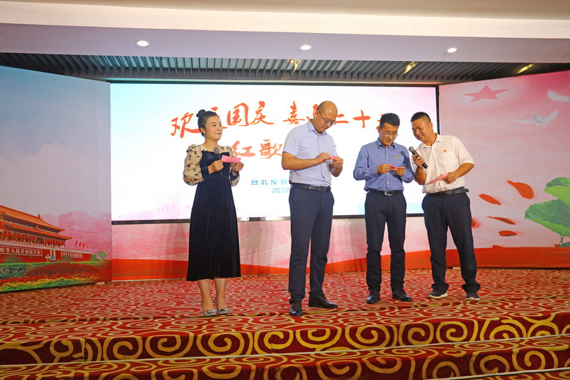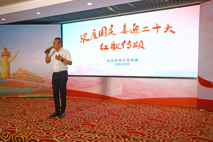 為慶祝新中國成立73周年,929日下午,臺北投資公司舉辦了“歡度國慶·喜迎二十大”紅歌傳頌會,來自各直屬單位和機關廣大員工匯聚一堂,用最甜美的聲音歌唱祖國、用最真摯的詩詞贊頌祖國,現場亮點頻現、精彩紛呈。