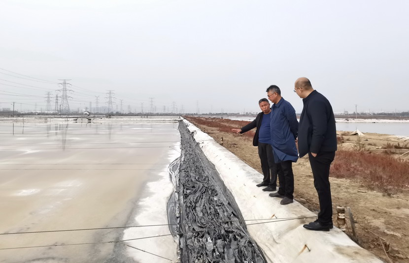 17日上午,公司領導王德志、卞霄帶領礦鹵制鹽升級工程指揮部一行調研灘地改造項目。