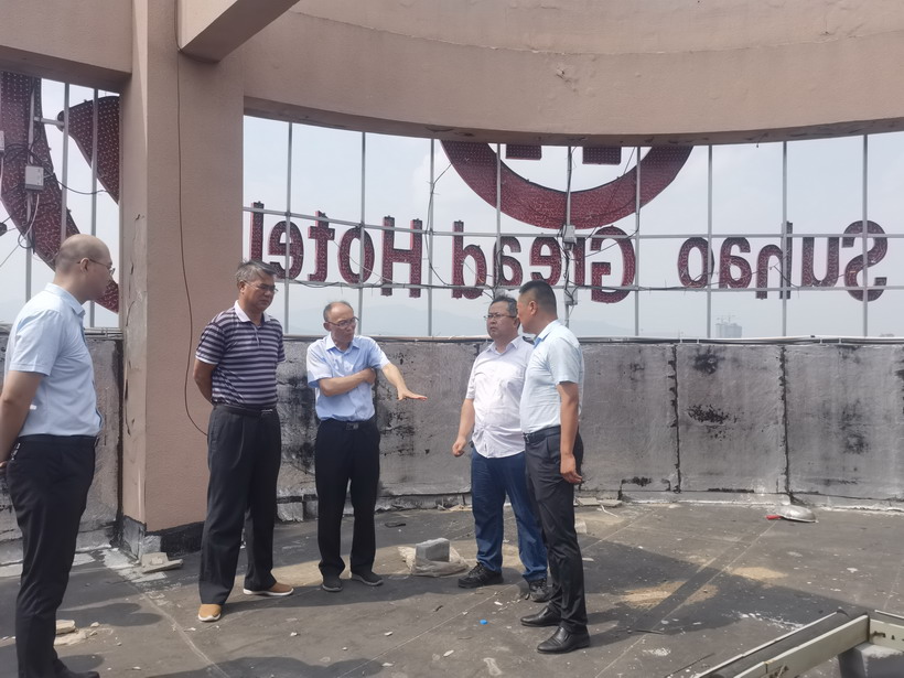 為進(jìn)一步吸取蘇州酒店塌樓事故教訓(xùn),近日,臺(tái)北投資公司全面加強(qiáng)建筑施工領(lǐng)域安全生產(chǎn)檢查。7月14日集團(tuán)公司安監(jiān)部胥廣會(huì)等領(lǐng)導(dǎo)一行檢查了公司租賃客戶蘇豪大酒店裝修工程。