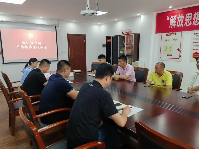 ? ? 中秋、國慶將至,為切實深化節日期間作風建設,進一步強化廉潔自律意識,筑牢防腐拒變防線。9月6日上午,臨達分公司開展節前集體廉政談話。