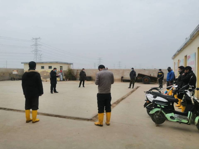2月21日下午,大浦工區在二組值班室院內召開露天會議,班組員工在值班室門前分散參加活動。