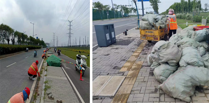 先鋒引領處處展現。近期高溫天氣持續,為保障徐圩新城夏季環境整潔達標。道路兩側、河道岸邊、綠化帶旁、到處都有黨員辛勤勞作工作畫面。黨員張學軍,龔飛、徐習東等同志勇挑重擔,帶頭處理拋灑,撿拾河邊丟棄垃圾200余包,清理道路積水20余處,轉運各種垃圾30余車,清理主道路面路牙雜草3000余米,高質量完成新區重大項目觀摩活動道路保潔作務。(楊波)
